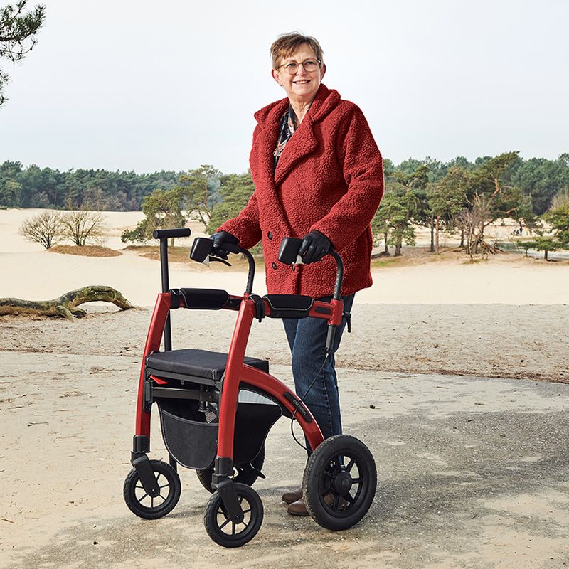 En revanche sur un sol très irrégulier comme un jardin, des chemins forestiers, à la plage, il est vivement recommandé de choisir des roues avec un diamètre supérieur à 20 cm.  Avec des grandes roues sur votre déambulateur il vous sera également plus facile de franchir les obstacles comme les trottoirs, et les inégalités de sol.