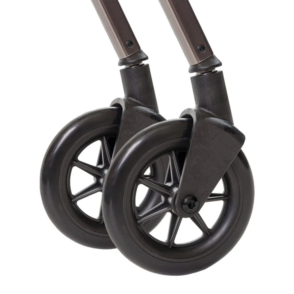 Le diamètre des roues va jouer sur la capacité à diriger facilement ou non votre déambulateur. Comme sur un vélo, plus le diamètre des roues est grand moins d’effort seront nécessaires pour pousser votre rollator.