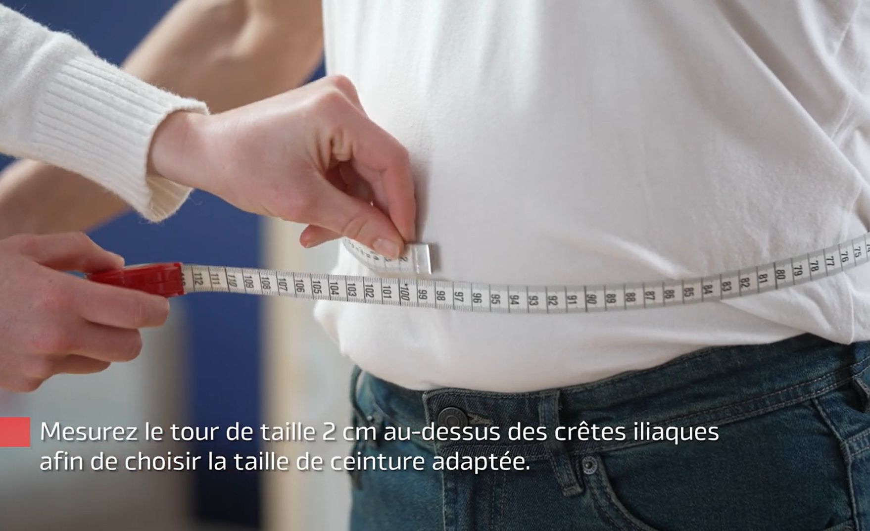 Il existe différentes tailles de ceinture lombaire. Pour choisir sa bonne taille de ceinture lombaire, il faut mesurer son tour de hanche en passant par le nombril au moyen d'un mètre couturier ou d'un mètre ruban.